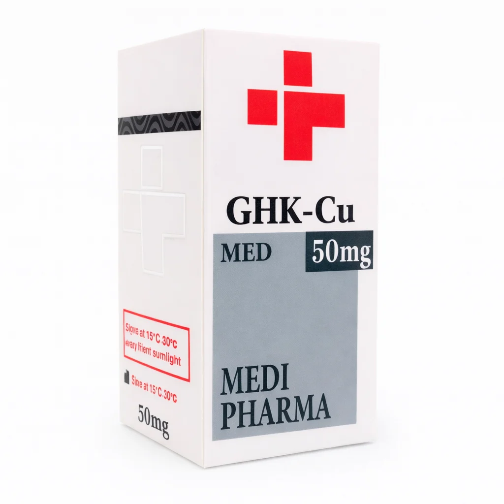 GHK-Cu 50mg (Glycyl-L-Histidyl-L-Lysine Copper) per vial is a short-chain peptide that binds a copper ion and is primarily known for its cell-regenerating and repairing properties. It is frequently investigated in peptide research for skin rejuvenation, wound healing, scar reduction, and hair growth.