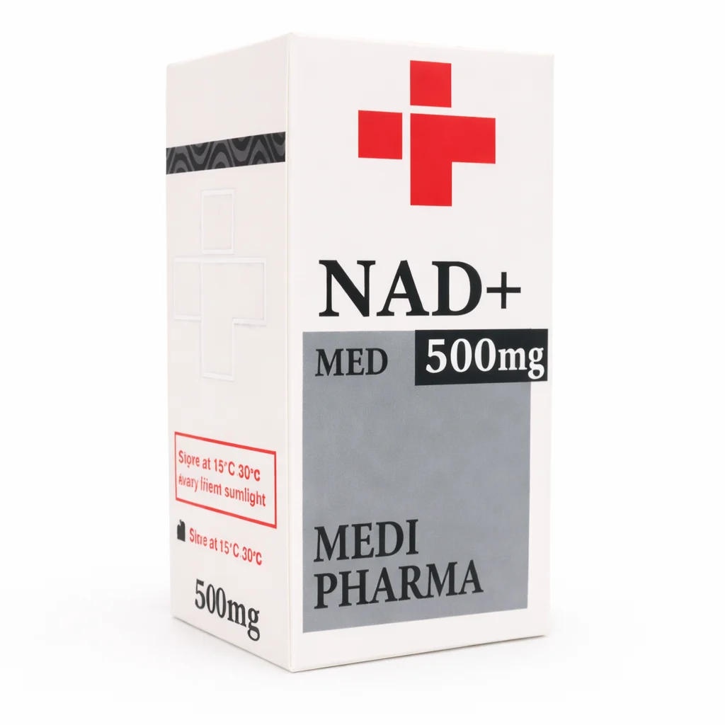 NAD⁺ 500 mg is a coenzyme found in all cells and plays a central role in energy metabolism, cell repair, and DNA repair. It supports mitochondrial function, increases cellular energy, promotes regeneration, and can counteract age-related cell degeneration.